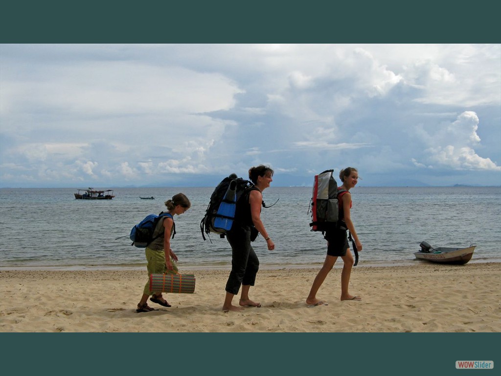 Nach etwas feuchter Bootsfahrt stranden wir dann auf Sibu. Man stelle sich diesen Strand mit Liegen u. Sonnenschirmen vor und frage mich, wann den TUI... Ein paar Tage später erobern wir Tioman. Zugegebenermaßen ist das zwar kein Geheimtip mehr, aber am Melina Beach (beim Peter Witzigmann) ist die Idylle noch perfekt.