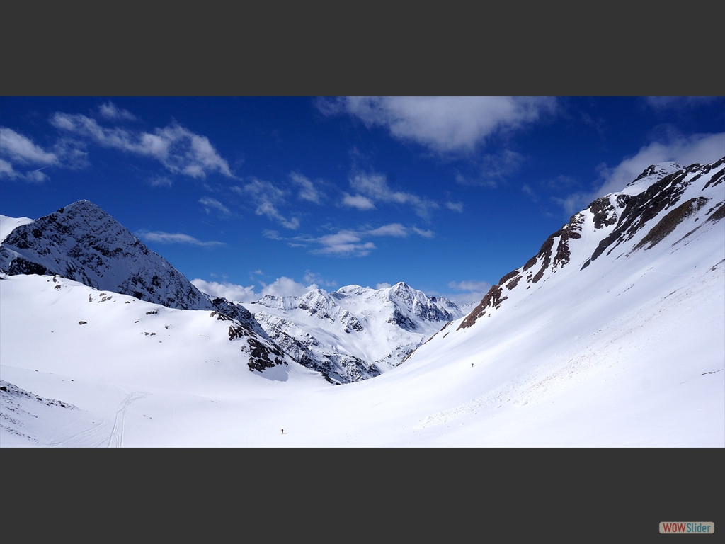 Die Lawinensituation war nicht ganz eindeutig, also Abfahrt zurück (ca. 300Hm) u. weiter auf der Wilden Grube Richtung Stubaier Gletscher.